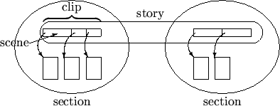 between a chapter and a story and between the clips of a story