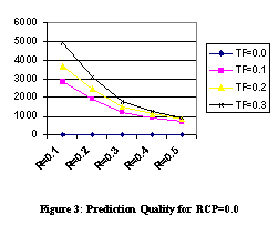 In both figures (1 and 2) we have omitted the case where RCP=0.0 because the prediction quality is naturally highly increasing for such a value and even a logarithmic integration of the values is not sufficient to obtain an acceptable graph. Figure 3 shows several time factor and random settings for a vanishing RCP value.