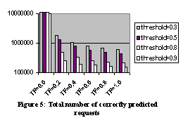 Every prediction algorithm must deal with a sort of threshold: What is a minimum value of the probability for future user requests to process a pre-calculation or a pre-fetching? We proposed a model where thresholds result directly from system- and document-dependent parameters [9]. This means that the threshold can not be set deliberately. Nevertheless, we will see that the influence of this variable is enormous. In the next paragraph we will present a possibility for overcoming the problem of fixed threshold-settings.