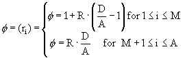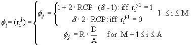 The random part of the probability setting (M+1 £ i £ A) has not changed. To derive the formula for the first M probability values f of S we consider the case where the former value of ri = 1. The new probability must be greater if RCP=0, but it has to be the same as before if RCP=0.5: